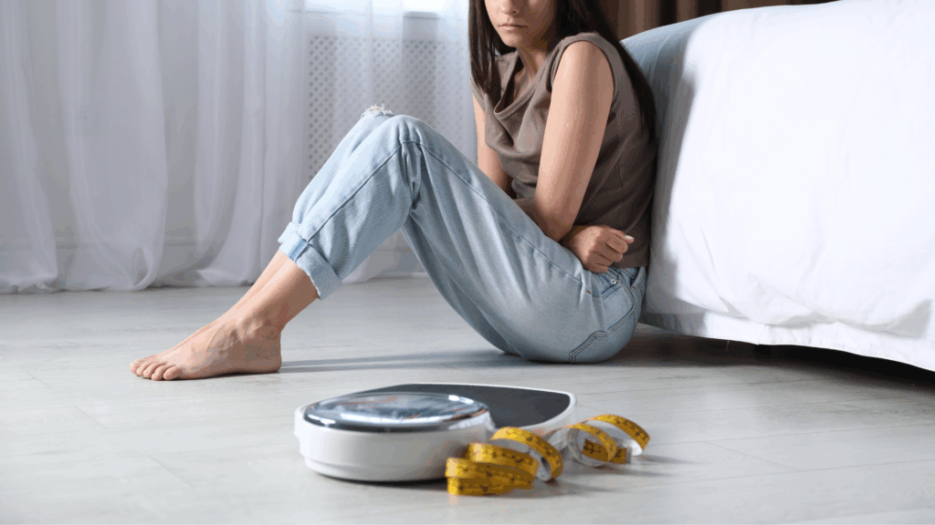 • Preocupación constante por el cuerpo: Pasas tiempo considerable cada día pensando en tu peso o tu figura. Te pesas múltiples veces al día. Te comparas constantemente con otros. Evitas situaciones sociales porque no te gusta cómo te ves. Tu autoestima depende casi exclusivamente de tu apariencia.